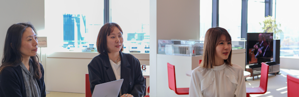 (写真左)管理本部 オフィスマネジメント部 オフィスファシリティ課 豊島 様 (写真中央)管理本部 オフィスマネジメント部 総務課長 佐藤 様 (写真右)管理本部 オフィスマネジメント部 総務課 受付担当 佐野 様