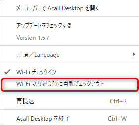 アイコン右クリックのメニューに [ Wi-Fi 切り替え時に自動チェックアウト ] が追加されました。