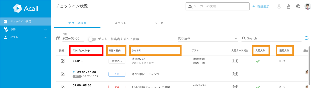画面が表示されるまでの時間が短くなります。一方で、担当者名・ゲスト情報などの一部は、ページを開いた直後に「読み込み中」の状態になる場合があります。また、読み込みが完了するまでの間、担当者やグループの選択操作が一時的に行えない場合があります。なお、登録されているデータが多い企業様ほど、改善を実感いただきやすくなります。