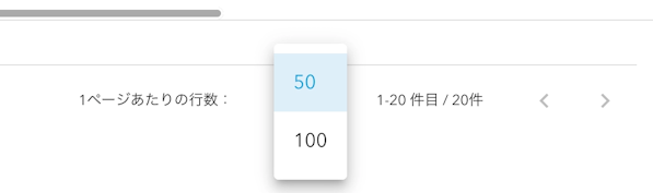 変更前: 1ページあたりの表示件数として「50件」「100件」「すべて」から選択できました。