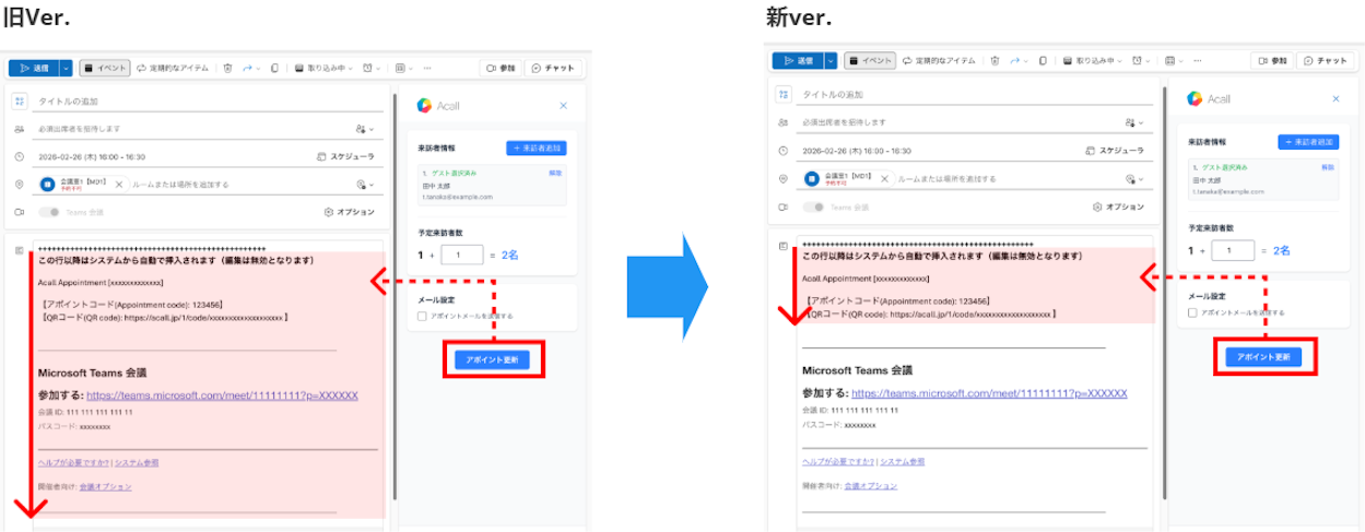 今後は、アポイント情報部分のみを差し替え、以降に記載された内容がそのまま保持されるように変更します。