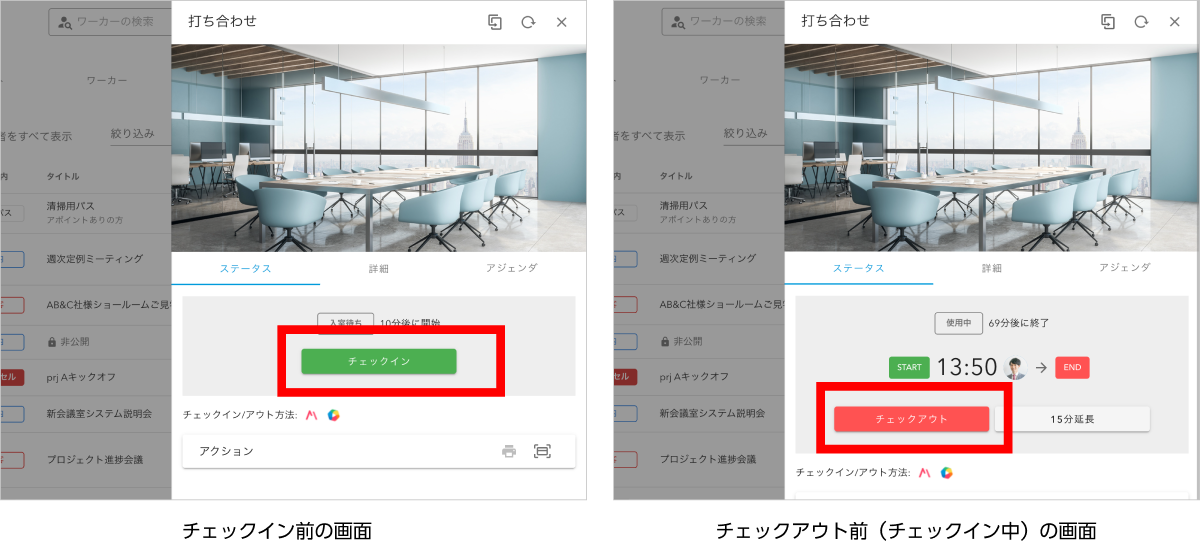 予約詳細画面の「チェックイン」「チェックアウト」ボタンをクリックしてから処理が完了するまでの時間を短縮します。操作後すばやく次のアクションに移れるようになります。